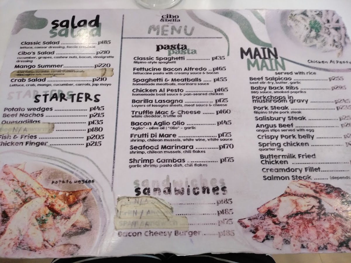 The menu at CIBO & BELLA is a testament to comfort food done right. Start your meal with delicious Quesadillas served on homemade pita bread, accompanied by a house-made garlic sauce for just ₱195.00. Or indulge in the rich and hearty Beef Nachos—a favorite among patrons—at ₱295.00. For something to share, try the crispy Chicken Fingers ($295), perfectly paired with their tangy homemade dipping sauce, or the classic Fish & Fries—a true comfort duo. Seafood lovers will appreciate the delectable Cream Dory Fillet at ₱320.00 or the Parmesan Crusted Fish—lightly breaded fish with cream sauce and mixed vegetables at ₱365.00.